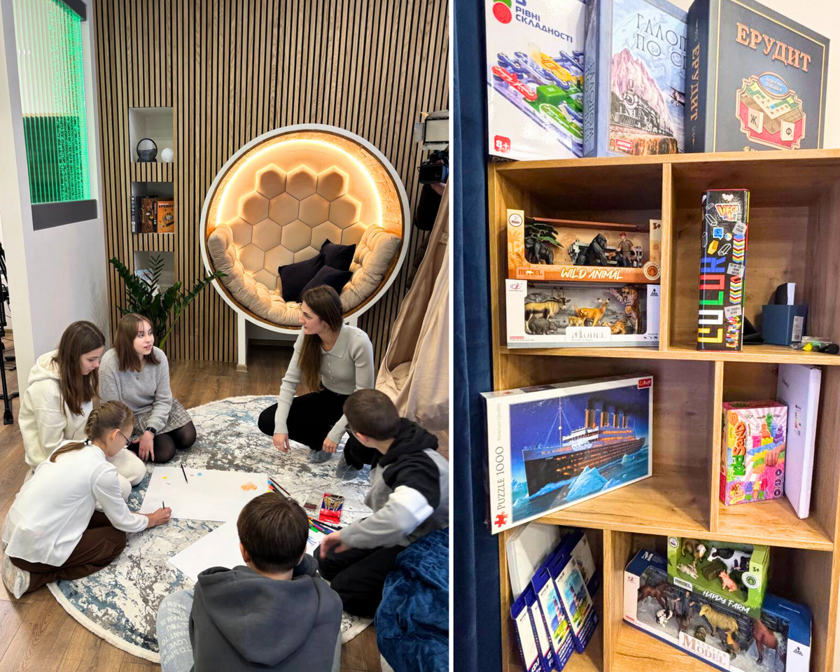 We wanted to create a multifunctional space where children and teachers could relax and recover from air raid sirens and stress. It will also host various classes for children and parents with the participation of psychologists,