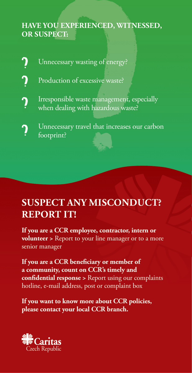 Карітас Чеської Республіки визнає, що зміна клімату є головною турботою нашого часу. Ми також усвідомлюємо, що спільноти, яким ми служимо, неоднаково страждають від наслідків зміни клімату. Враховуючи ці переконливі аргументи, ми хочемо краще зосередитися на нашому впливі на навколишнє середовище і надалі сприяти сталому розвитку наших програм.