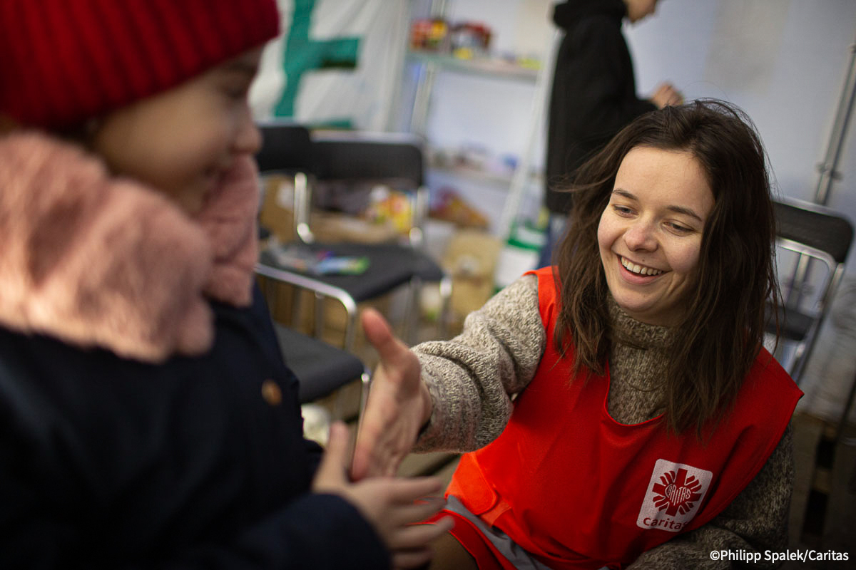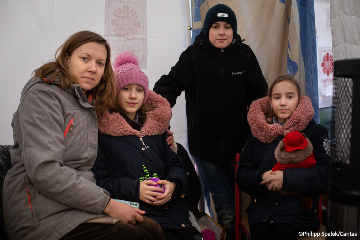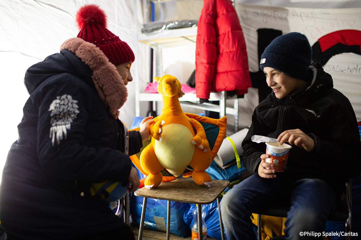 Коли приїхали до Польщі, Вікторія не знала, що робити. Їй потрібно було знайти безпечне місце для своїх дітей, тому що чоловік приїде до них аж через кілька годин. Вона зустріла нашого колегу з Карітасу, який відвів її та дітей до намету. Він приніс їм їжу та гарячий чай, діти отримали кілька м’яких іграшок, надісланих донорами.