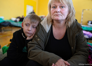 Подорож на захід країни зайняла у них 20 годин. «Люди спали, де хто міг», – описує важку дорогу Таня, а Микита оглядається через її плече. Потім сіли в автобус, який довіз їх до польського Перемишля. Там місцевий Карітас простягнув їм руку допомоги.