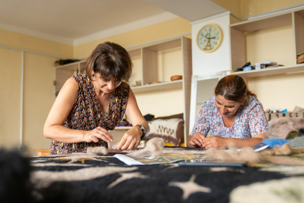 У віддаленому селі Земо Алвені у слаборозвиненому регіоні Грузії п'ятеро жінок вирішили відродити ремісничу традицію, яку вони перейняли від своїх бабусь. "У дитинстві ми гралися, коли наші бабусі займалися так званим ремеслом “тека”, - згадує Тамар, одна із засновниць майстерні. Разом вони створили жіночий колектив і вирішили продовжити це традиційне виробництво, яке включає в себе торбинки, килимки, прикраси та інші вироби з вовни. Вони отримали грант від Caritas Czech Republic, який дозволив їм відремонтувати приміщення та придбати необхідне обладнання. “Завдяки підтримці Карітасу Чеської Республіки ми змогли запустити нашу майстерню”, - хвалиться Тамар.